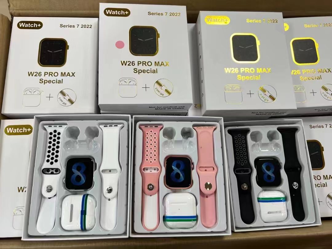 ساعت هوشمند + ایرپاد +دو بند سیلکونی سری 8 مدل W26 pro max