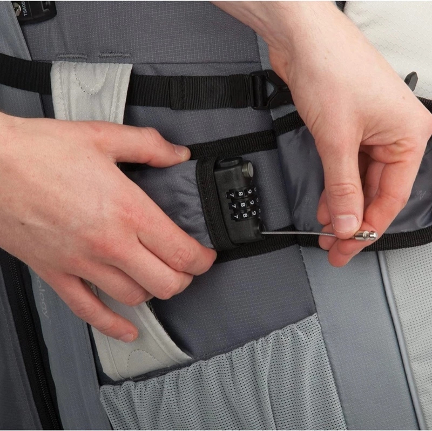 نحوه ریست کردن و تغییر رمز در قفل ها، در عکس های انتهایی محصول توضیح داده شده است. دهانه تمام طول: کوله های Numinous همگی دارای دهانه تمام طول و جیب های برنامه ریزی شده داخلی هستند. این به شما این امکان را می دهد که Numinous خود را مانند یک چمدان باز کنید، و بدون اینکه مجبور باشید محتویات کوله پشتی خود را وارونه کنید سریع به یک مورد خاص دسترسی پیدا کنید! جیب های برنامه ریزی شده سریع، همچنین به شما این امکان را می دهند که اسناد، اقلام یا کلیدهای مهم را در مکانی امن و به راحتی در دسترس قرار دهید. پشتیبانی کمری و سیستم جریان هوا : همه محصولات Numinous مجهز به سیستم جریان هوا و پشتیبانی کمری ما هستند که حداکثر راحتی را هنگام پوشیدن Numinous شما تضمین میکند. سیستم جریان هوا طراحی شده بهخصوص اجازه میدهد تا یک محفظه هوا بین پشت شما و کوله حرکت کند، به این معنی که هنگام استفاده از کوله در آبوهوای گرمتر گرم و عرق نمیکنید. طول پشت قابل تنظیم (۵۰-۶۰ سانتی متر) سیستم حفاظتی زیپ فلپ ثبت شده سیستم قابل تنظیم پشت : سیستم تنظیم ارتفاع به کاربران با هر شکل و اندازه اجازه می دهد تا به راحتی از Numinous استفاده کنند. قدتان چه کوتاه باشد، چه بلند، سیستم پشتی قابل تنظیم راحتی را برای تان تضمین می کند. برای تنظیم به سادگی تسمه های بالایی را سفت یا شل کنید، یا اگر نیاز به حرکت زیاد سیستم پشتی دارید، با سگک های بالایی تغییر دهید. روکش پشتی پنهان: کوله های Numinous مجهز به یک روکش پشتی پنهان هستند که به شما امکان میدهد هر گونه بندهای آویزان را در حالی که کوله در فرودگاه، اتوبوس یا قطار در حال سفر است، مرتب کنید. همچنین به شما این امکان را می دهد که کوله در صورت عدم استفاده مرتب باشد. جیب های جانبی مشبک - همه محصولات Numinous دارای جیب های مشبک جانبی هستند تا امکان دسترسی سریع به مواردی مانند آب یا مایعات را فراهم کنند. دستگیرههای حمل جانبی - Numinous دارای دستههای حمل جانبی برای سهولت بارگیری و بلند کردن کوله بر روی تسمههای نقاله یا وسایل نقلیه هستند. برای استفاده از قفل کابلی ابتدا چسب جیب را باز کرده- سیستم قفل دارای دو دکمه می باشد که دگمه جلویی برای جمع کردن کابل است. کل سیستم را کمی از جیب بیرون بیاورید تا دکمه ای که در قسمت انتهای آن وجود دارد (داخل جیب است) ببینید. آن را فشار دهید و همزمان سیم را به بیرون بکشید، سپس کابل را در سوراخ سمت چپ بگذارید تا قفل شود