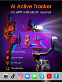 تثبیت کننده گوشی هوشمند [ردیاب هوش مصنوعی با نور پرکننده قابل تنظیم] کیت hohem M6 به یک ردیاب هوش مصنوعی خلاقانه مجهز شده است که می تواند بدون اتصال بلوتوث و محدودیت برنامه، ردیابی چهره/بدن را به آرامی انجام دهد. حسگر بینایی هوش مصنوعی را می توان با حرکات اختصاصی فعال یا غیرفعال کرد و اطمینان حاصل کرد که سوژه همیشه در کادر است. نور پرکننده CCT/RGB قابل تنظیم با روشنایی از نور سرد و گرم و رنگهای محیطی 360 RGB پشتیبانی میکند و عکاسی در محیطهای کم نور را آسان میکند.