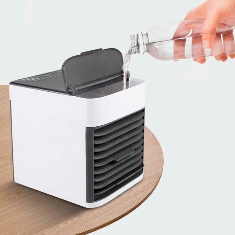 دستگاه ارائه شده یک کولر قابل حمل با خروجی باد محدود (پرتاب باد حدود 5 متر) با کاهش دمای محسوس که با پاوربانک های معمول و یا کابل USB تایپ C، قابل استفاده است (فاقد باتری داخلی بوده و باید به منبع برق (لپتاپ/پاوربانک/یو.اس.بی) وصل باشد). مکانیسم خنک کنندگی تبخیری بوده و از یک فن کم مصرف و برگه های سلولوزی بهره می برد که از این نظر عملکردی مشابه با کولرهای سلولزی معمول اما در ابعادی کوچک و قابل حمل دارد. تنظیمات دستگاه شامل تنظیم شدت باد در 3 درجه و رنگ قابل انتخاب برای نور ملایم دستگاه است. شارژدهی با شارژ کامل و شدت باد متوسط حدود 7.5 ساعت است. گنجایش مخزن آب حدود 700 میلی لیتر است. میزان صدای دستگاه باتوجه به بهینه فن، خیلی کم هست. دستگاه برای استفاده روی میز کار، چادرهای کوچک و فضاهای محدود مناسب است؛ همچنین در پاییز و زمستان با خشک شدن هوا، می توان برای مرطوب یا خنک نگه داشتن محیط گیاهان خانگی حساس از آن استفاده کرد. اگر کلا قصد استفاده از قابلیت خنک کنندگی ندارید، می توان در مخزن آن اکالیپتوس و مواد معطر ریخت تا فضا را خوشبو کند