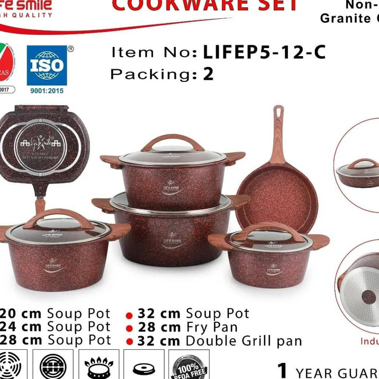 سرویس قابلمه لایف اسمایل دسته چوبی 12 پارچ گرانیت FLMC 12