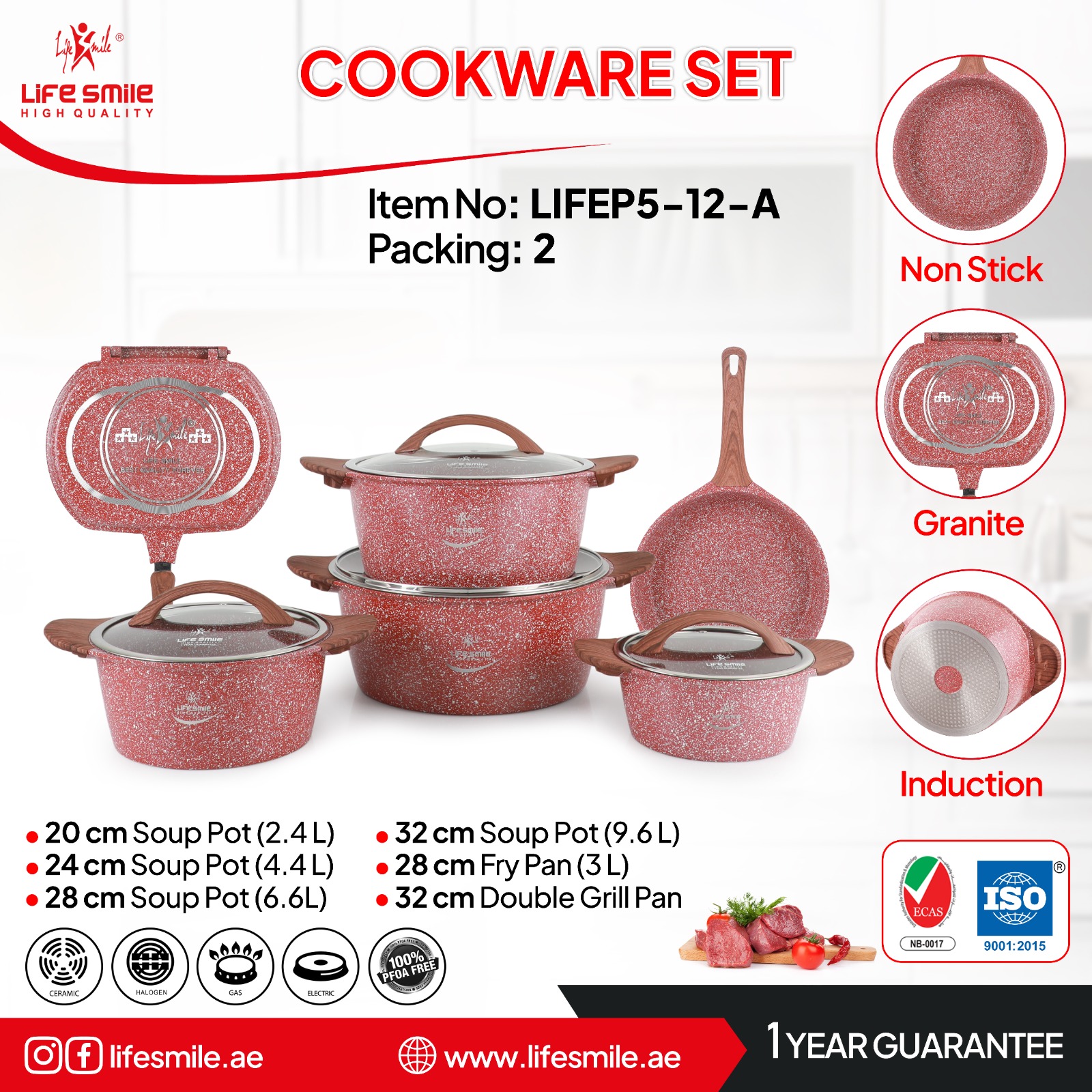 سرویس قابلمه لایف اسمایل دسته چوبی 12 پارچ گرانیت FLMC 12