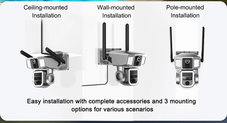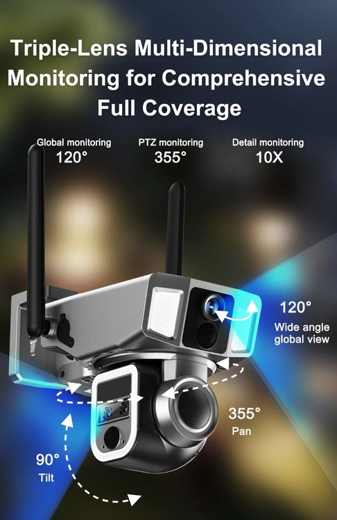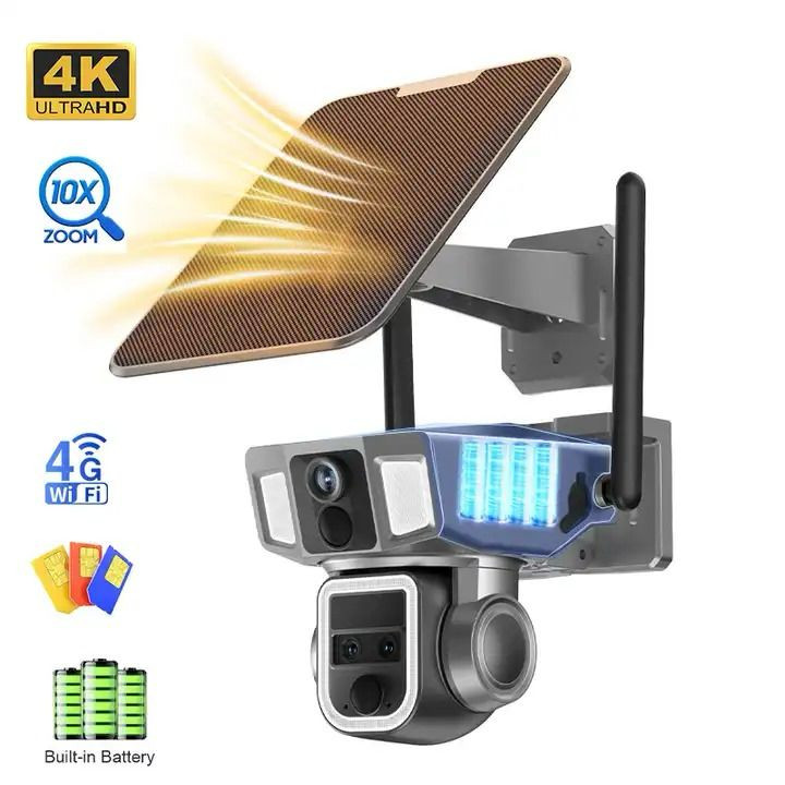 دوربین مدار بسته بی سیم سولار CRONY D5 WiFi-4K-8MP Solar Dual Linkage Battery PT Camera 8MP | بدون نیاز به تنظیم فوکوس، تصویر پس از نصب واضح است Solar triple-lenz linkage Camera 10x z