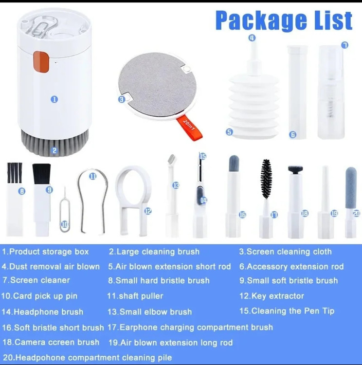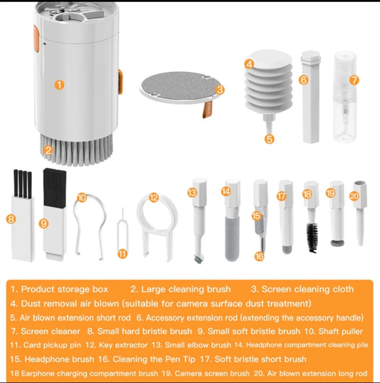 بسیاری از قسمت ها گوشی، لپتاپ، هندزفری و... ما غیر قابل دسترس هستند و نمی توان به سادگی آن ها را تمیز کرد و این خود معضل بزرگی است که برطرف کردن آن برای ما کار سخت و گاهی غیر ممکن خواهد بود. شرکت کوتتسی یک کیت تمیز کننده Coteetci 75003 20 In 1 Multifunction Cleaning Kit را طراحی کرده است که به خوبی به واسطه گجت هایی که دارد به ما کمک می کند تا قسمت هایی که دسترسی به آن ها بسیار سخت بوده و گاهاً ممکن نیست، قابل دسترسی شوند و امکان تمیز کردن آن ها برای ما وجود داشته باشد.