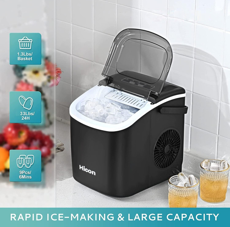 یخ ساز جمع و جور، با ابعاد 8.6 * 11.7 * 11.4 اینچ، فضای زیادی از آشپزخانه شما را نمی گیرد و به راحتی می توان آن را گرفت.