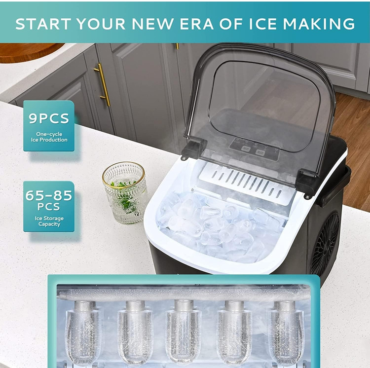 4) یخ ساز جمع و جور و قابل حمل:این یخ ساز از نظر اندازه جمع و جور است و برای مهمانی ها، کمپینگ، RV، دفاتر، بارها، رستوران ها، کافی شاپ ها و غیره مناسب است. می تواند نوشیدنی های سرد، کوکتل، اسموتی، قهوه سرد یا ... دیگران؛ این یک انتخاب ایده آل برای خانواده است.