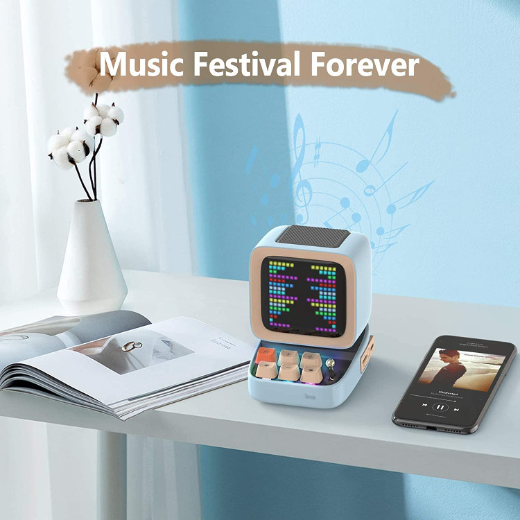 Meet Divoom Ditoo - It’s the most visually pleasing, funnest, and feature-packed little speaker you can get. The keys on this model are unique in that it uses backlit mechanical keyswitches on mini keyboard and the bright colors on the 16 x 16 pixel "monitor" which adds to the theme of a small retro computer.