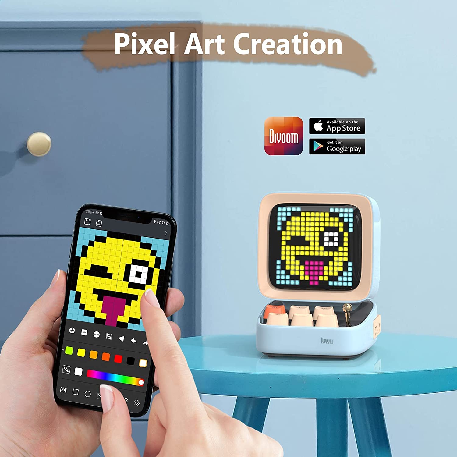 Easy-to-use APP - iOS/Android phone and tablet compatible. The app is easy to download with the QR code and it is easy to navigate when on it. You can change all the settings via the app and add your custom pixel art or download ones by other users.