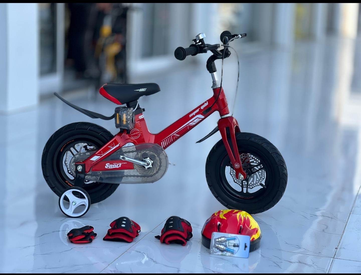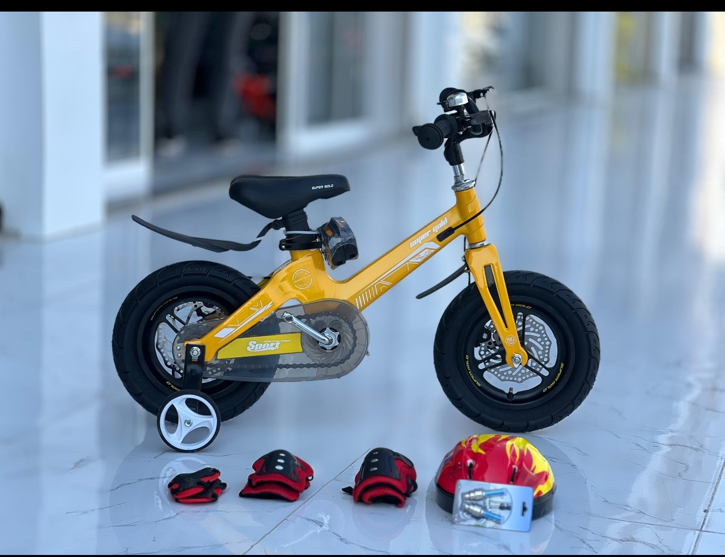 دوچرخه 12 منیزیمی فوق سبک لاکچری گلد کایان بایک همراه با لوازم ایمنی