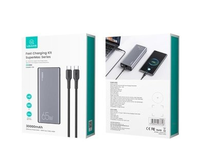 پاوربانک 30000 میلی آمپر 65W یوسمز مدل US-CD165 محصولی از شرکت یوسمز است که با باتری لیتیوم پلیمری با ظرفیت 30000 و تکنولوژی فست شارژر با پروتکل های PD و QC و توان کلی 65 وات می تواند در کمترین زمان ممکن گوشی، تبلت و لپ تاپ را شارژ کند. این پاوربانک دارای 3 پورت می باشد که 2 تا از آن ها USB فست شارژر با پروتکل QC و دیگری که پورت تایپ C می باشد و هم پورت خروجی و هم پورت ورودی برای شارژ خود پاوربانک با پروتکل PD می باشد.