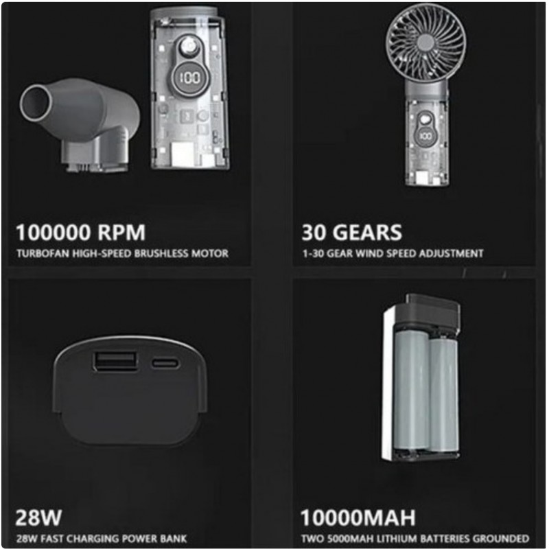 متاسفانه این کالا در حال حاضر موجود نیست. میتوانید از طریق لیست بالای صفحه، از محصولات مشابه این کالا دیدن نمایید.مشخصات محصول : دستگاه دارای ۲ سر قابل تعویض (دمنده و فن) - ۶ چراغ LED با روشنایی بالا/ نمایشگر سرعت / نشانگر سطح باتری