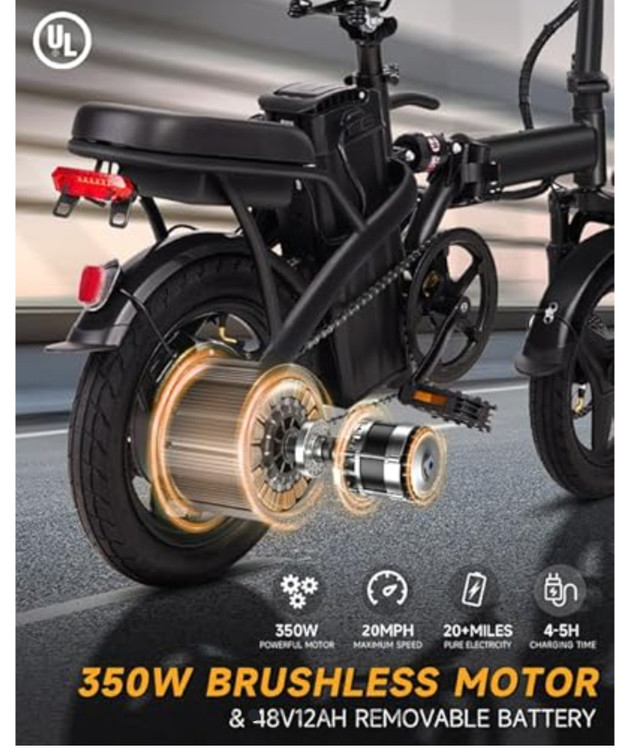 【350W و 3 حالت سواری】موتور 350W براشلس سواری ایمن و کارآمد را با حداکثر سرعت 20 مایل در ساعت تضمین می کند. پس از شارژ کامل، میتوانید 20+ مایل را در حالت کمک پدال طی کنید. این سه حالت سواری را ارائه می دهد: حالت برقی خالص، حالت کمک پدال، و حالت دوچرخه معمولی برای مطابقت با نیازهای مختلف.