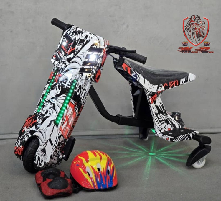 نسل جدید اسکوتر های برقی به صورت موتوری که بسیار مهیج تر از اسکوترهای معمولی است . این مدل اسکوتر ها سه چرخ بوده چرخهای عقب آن معلق می باشد که این امر باعث شده حرکت با آن به صورت 360 درجه ای و بسیار مهیج شود این مدل از اسکوتربرقی ها بسیار سریع و هیجان انگیز است . موتور دریفت با باطری لیتیومی 36 ولتی با آمپر بالا امکان زمان بیشتر شما از اسکوتر را فراهم می کند. این اسکوتر دارای موتور براشلس 600 واتی قدرتمند می باشد.