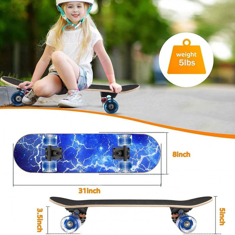 تخته 7 لایه چوب افرا، چرخ های پهن PU نرم چراغ دار به همراه بلبرینگ های ABEC-7؛ همه در کنار یکدیگر تجربه ی یک سواری نرم و با کیفیت را برای شما به ارمغان خواهد آورد.