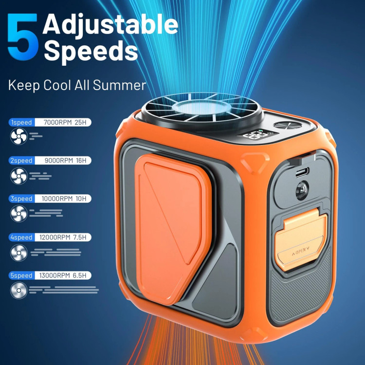 پنکه کمری قابل حمل گیره دار، باتری قابل شارژ و چراغ قوه 10000 میلی آمپر ساعت، مناسب برای زیر پیراهنی