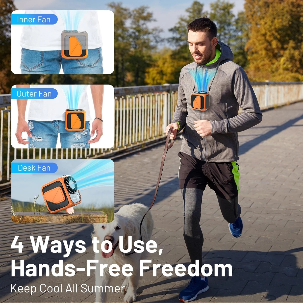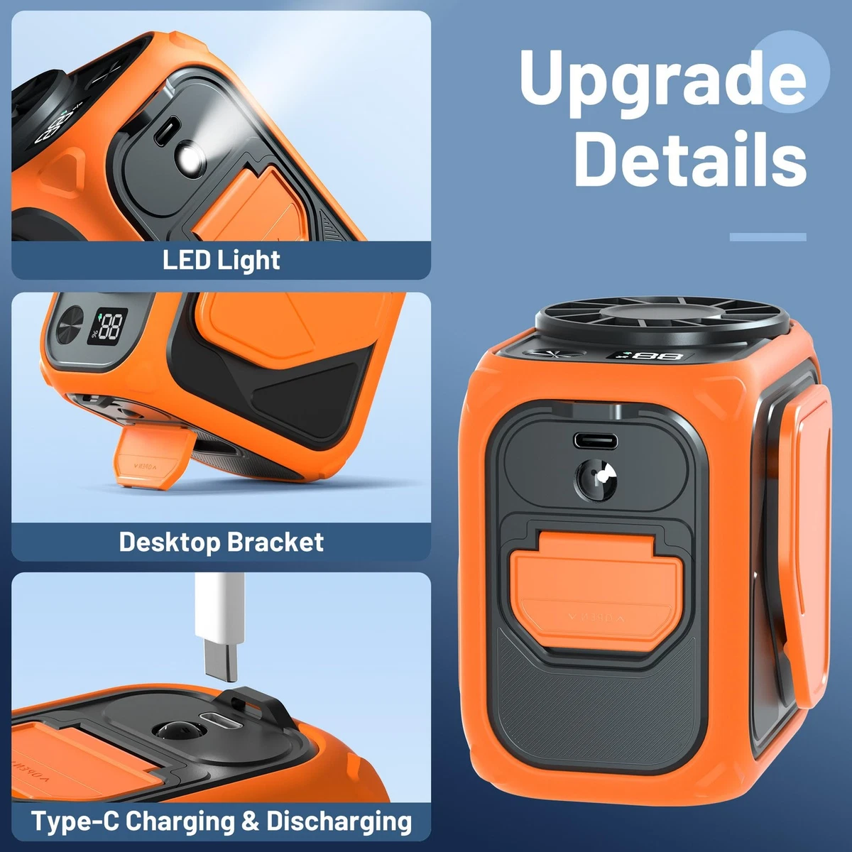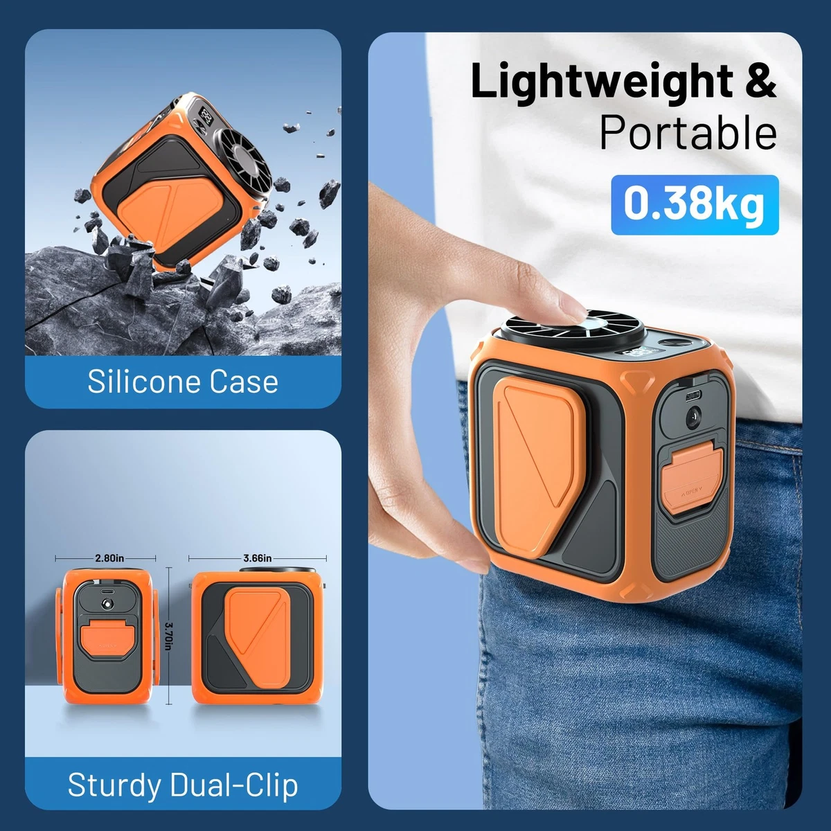 پنکه کمری قابل حمل گیره دار، باتری قابل شارژ و چراغ قوه 10000 میلی آمپر ساعت، مناسب برای زیر پیراهنی