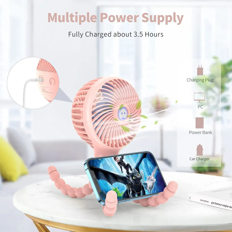 【قابلیت تغذیه با USB یا باتری】دو نوع منبع تغذیه: تغذیه با USB یا باتری. میتوانید آن را از طریق کامپیوتر، پاوربانک یا شارژر ماشین شارژ کنید. پنکه کالسکه با باتری داخلی 2000 میلیآمپرساعتی، پس از شارژ کامل میتواند تا ساعت ها کار کند.
